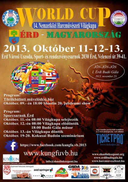 Jövő héten, 2013. október 11-12-13-án megrendezésre kerül az Érdi Sportcsarnokban a 14. Nemzetközi Harcművészeti Világkupa!